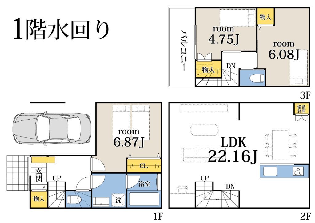 設備 | 東京電力、都市ガス、公営水道、本下水 |