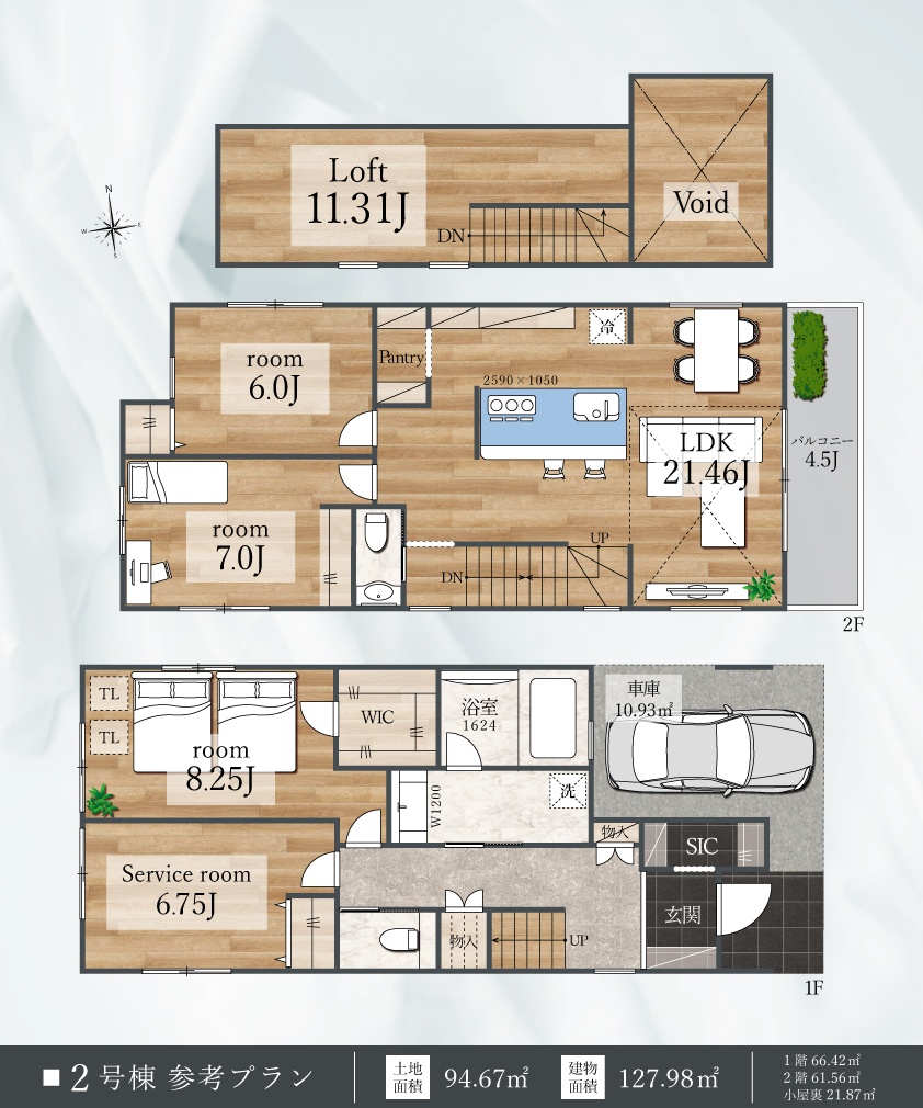 | 土地面積 | 94.67㎡~95.99㎡ |